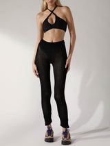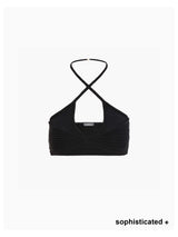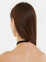 Chiusura con cinturino al collo impreziosita da elementi metallici color oro.