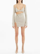 Completa la tua silhouette seducente con SUNA, il mini cardigan che unisce estetica e funzionalità. Esalta la tua splendida scollatura e snellisce il punto vita.
