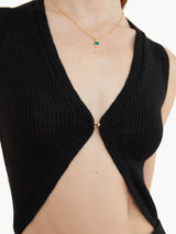Embrace a beautiful neckline embellished with a gold-tone closure hook.