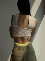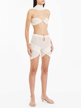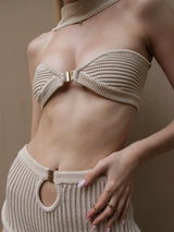 The stretch bandeau wraps around your neck and chest embellished at the front with a gold-tone metal buckle.