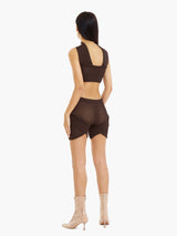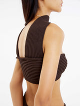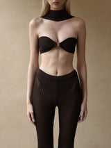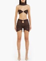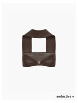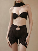 The stretch bandeau wraps around your neck and chest embellished at the front with a gold-tone metal buckle.